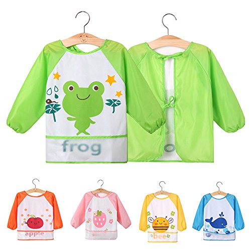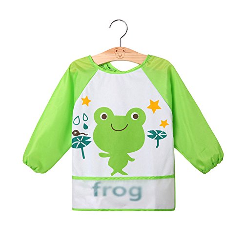 Canisベビー お食事エプロン 長袖 防水 お絵描き 離乳食 保育園用 対象年齢1~4歳 かわいいデザイン 7色 (蛙 )