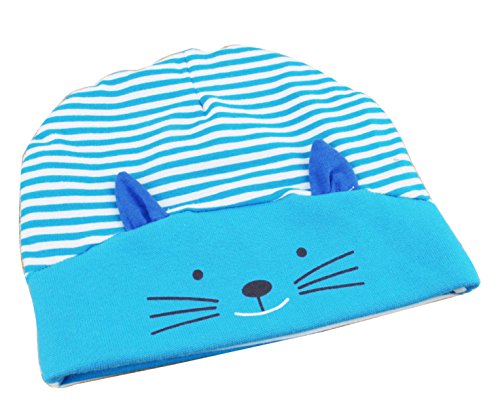 CANIS ベビー 赤ちゃん 新生児用 帽子 キャップ 子ども 子供 幼児 耳 付き 女の子 男の子 猫 プリン 可愛い ハット (ブルー)