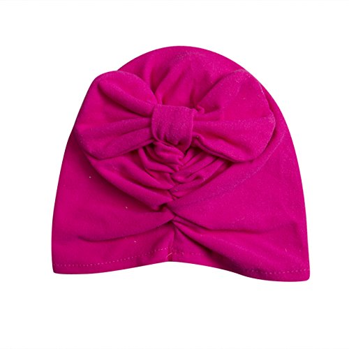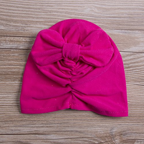 Canis ベビー帽子 新生児 幼児 ソフト 可愛い ターバン リボン ふわふわ ヘアアクセサリー 髪飾り 保育園ビーニー (ローズレッド)