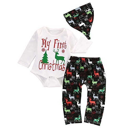 CanisベビーMy Firstクリスマスボディスーツと鹿プリントパンツOutfit with Hat カラー: ホワイト