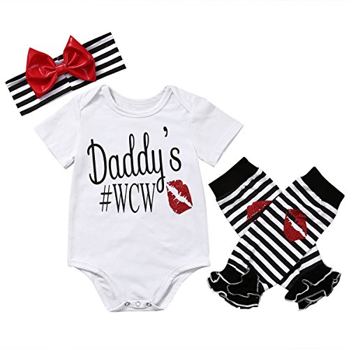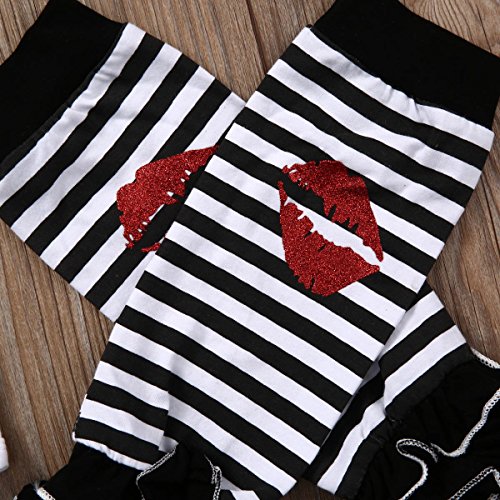 Canis Baby Girlsパパの# WCWボディスーツストライプレッグウォーマーOutfit withヘッドバンド カラー: ブラック