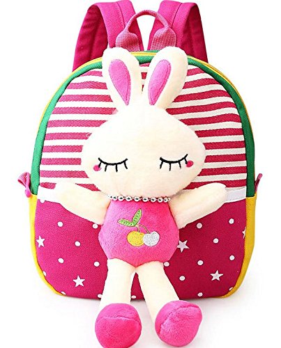 CAINS リュック 可愛い くまさん ウサギさん リュック 子ども キッズ リュックサック 迷子通学 通園 遠足 男女兼用 バッグ (ローズピンクウサギ)