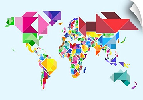 マイケル・Tompsett壁Peel「Tangram抽象壁アートプリント世界マップ 60" x 44" 1019509_14_60x44_none