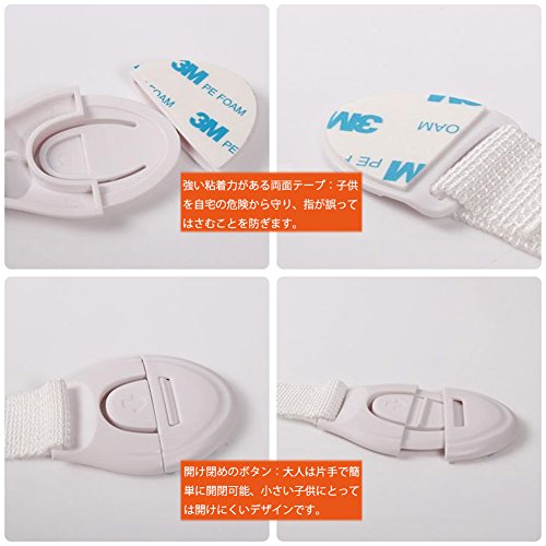 - Nylon布バンドと押しボタンのデザイン:連結部が布製なので色んな角度でも貼り付けやすくて、開け閉めのボタンが子供は解除できないのに、大人に対して、ロック解除がワンタッチで済むのでストレスがありません。引出し、引き戸、台所の棚、冷蔵庫、キャビネットや戸棚などのドア、トイレの便座からしっかり守って、指が誤ってはさむことを防ぎ、安心できます。