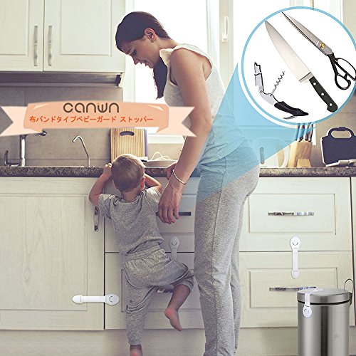 「10点セット」ベビーガード ストッパー,Canwn 布バンドタイプ 赤ちゃん安全ロック 子供ケガ防止 はがせる 開閉禁止 引き出し 台所の棚 冷蔵庫 食器棚 戸棚ドアロック いたずら防止 指はさみ防止 地震対策