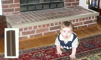 Side depth is adjustable from 8" to 18".. This product only works on standard, 3-sided hearths with 90° corners.. The Original and only Metal Backed Hearth Guard clamps onto the fireplace. No adhesive necessary, no damage done to the fireplace. The pad is adhered to a telescoping frame, which is adjustable for hearths 45" – 76". A 24" extension is available for wider hearths. Colors are black, brown, gray, taupe and ivory.