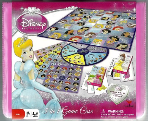 Disney Princess 5 in 1 Game Case: Checkers, Tic Tac Toe, Bingo, Go Fish, Old Maid (with Pink Carrying Case)