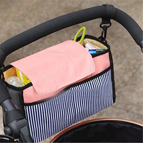 Carfeny ベビーカー ドリンク ホルダー ベビーカー用バッグ 二つベルクロフック付き オーガナイザー 多機能小物入れ ポーチ 出産祝い (ピンク)