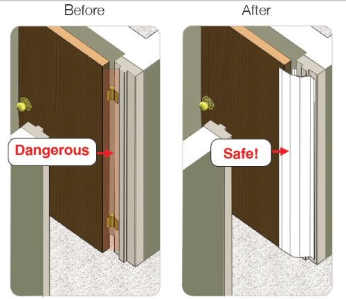Provides complete finger protection at the hinge-side of the door.;Allows normal operation of the door.;Easy and quick installation, with no tools or screws required.;Snap-to-fit feature allows for customization for shorter doors.;Attractive and affordable. Made in USA.