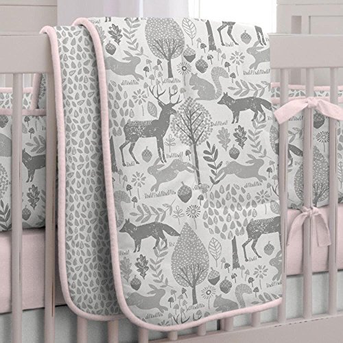 - Carousel Designs Pink and Gray Woodland Crib Comforter