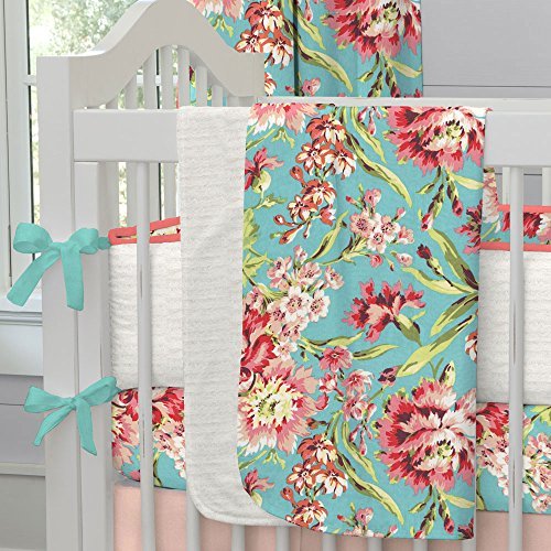 Carousel Designs Coral and Teal Floral Crib Blanket by Carousel Designs