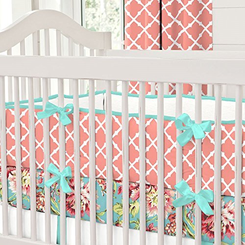- Carousel Designs Light Coral and Teal Lattice Crib Bumper