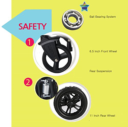 - Features: One Touch Foot Brake, Locking Pole System, Detachable Seats, Detachable Basket, 6.5 inch Front Wheel, 11 inch Rear Wheel