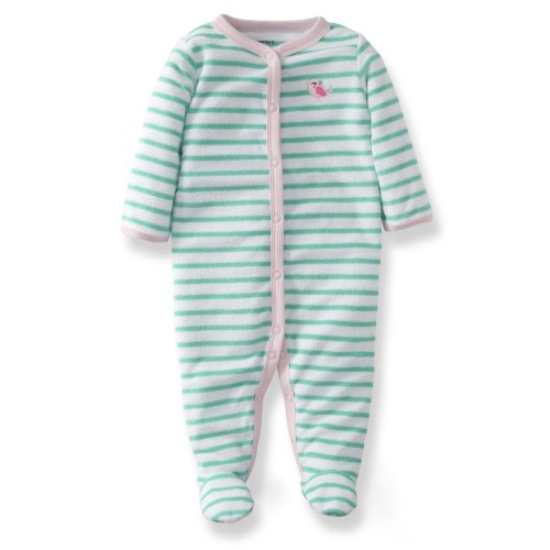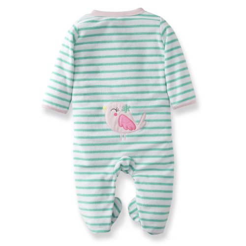 Carter's ( カーターズ ) 長袖 足つき カバーオール バード グリーン ボーダー タオル 地 3ヶ月 3M 55cm 60cm115A141 並行輸入