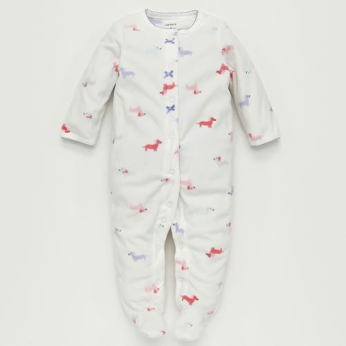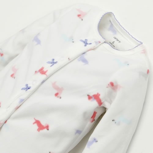 Carter's (カーターズ) フリース フロントスナップ カバーオール 長袖 足つき ホワイト ダックスフンド [並行輸入品]