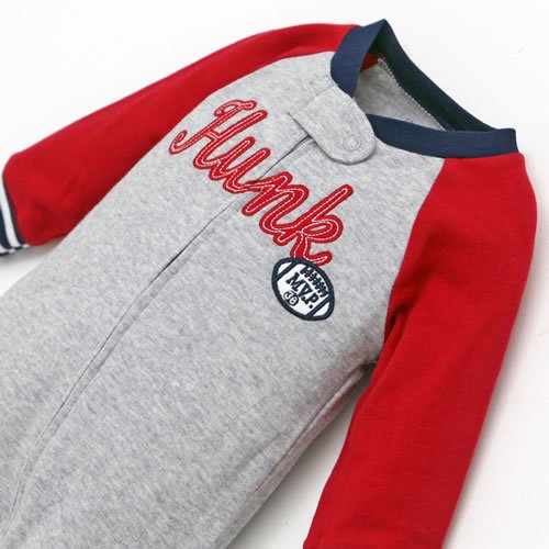 - 胸の部分にHunkの文字の刺繍アップリケが付いています。足カバー部分は靴のデザインになっています。