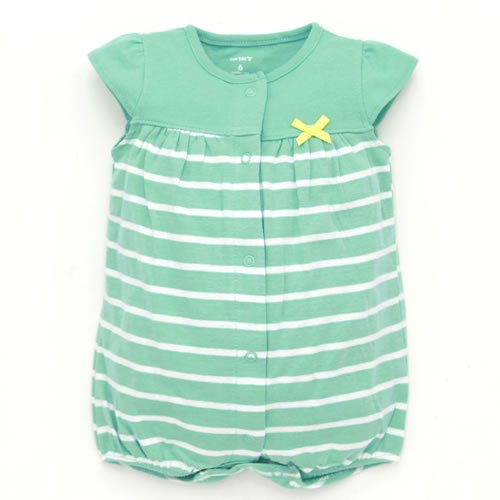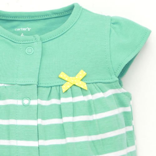 Carter's (カーターズ) キャップスリーブ ストライプ フロントスナップ ロンパース エメラルドグリーン (12m)