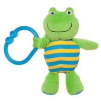 かわいいカエルちゃんはふにゃっとした感触で肌触りが気持ちいいです。カエルちゃんと取り付け輪っかの間のひもを伸ばすと(両方に引っ張ると)カエルちゃんがぶるぶる震えます。♪赤ちゃんも興味津々です。♪♪カラフルな色がベビーカーやベビーベッド、ベビーチェアーをかわいく演出してくれますね。(^^)外出時のおもちゃとしてもお勧めです。☆サイズ:カエルちゃんのみの大きさで13センチ