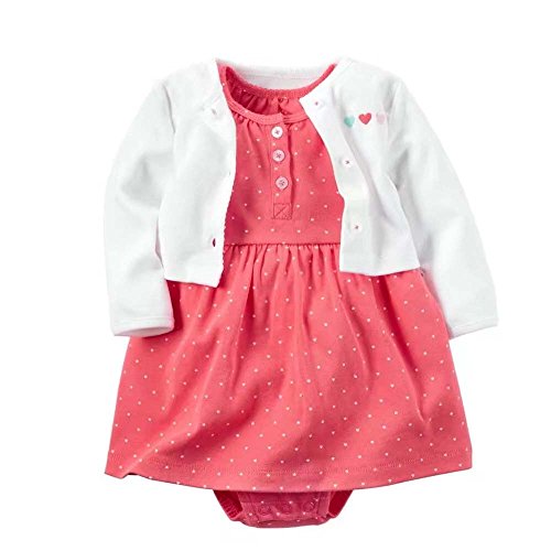 カーターズ Carter's カーディガン 半袖ロンパース ワンピース 2点セット 白ハート ベビー服 女の子 (6months(61-67cm)) [並行輸入品]