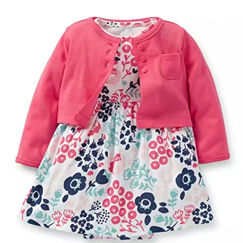 カーターズ Carter's カーディガン 半袖ロンパース ワンピース 2点セット ベビー服 女の子 ピンク×レトロ花 (12months(72-78cm)) [並行輸入品]