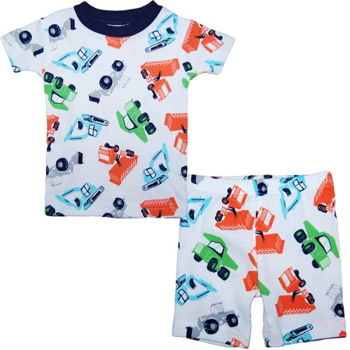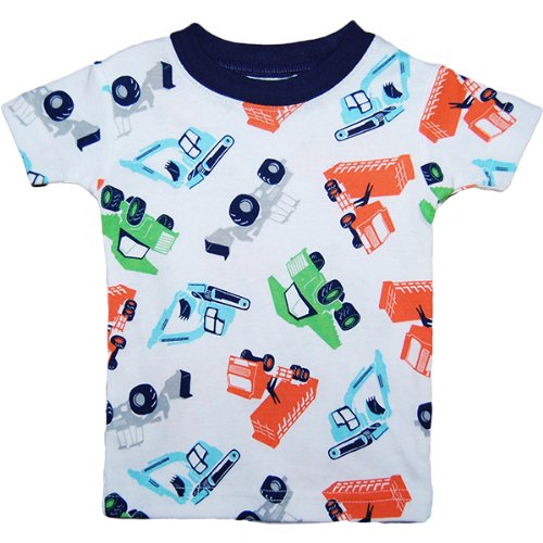 カーターズ(Carter's)男の子用ホワイトxカラフルショベルカー半袖パジャマ上下2点セット 6months 6ヵ月用 70cm 出産祝い,寝巻き,綿おねんね着,コットンスリープウェア【並行輸入】
