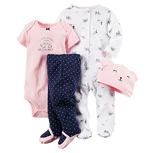 カーターズ Carter's ご出産祝いに ロンパース カバーオール 長袖 足つき ボディスーツ パンツ 足つき 帽子 豪華4点 ギフトセット 女の子 春夏秋冬 I Love Kisses From Mommy Bicycle Sleep & Play Set 6M (61-67cm) [並行輸入品]