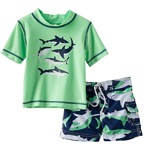 カーターズ(Carter's) 男の子用ミントグリーン迫力満点シャーク半袖ラッシュガード水着上下2点セット (3t(93-98cm)) [並行輸入品]