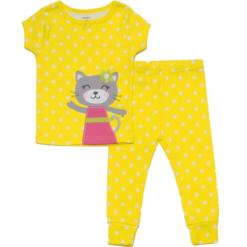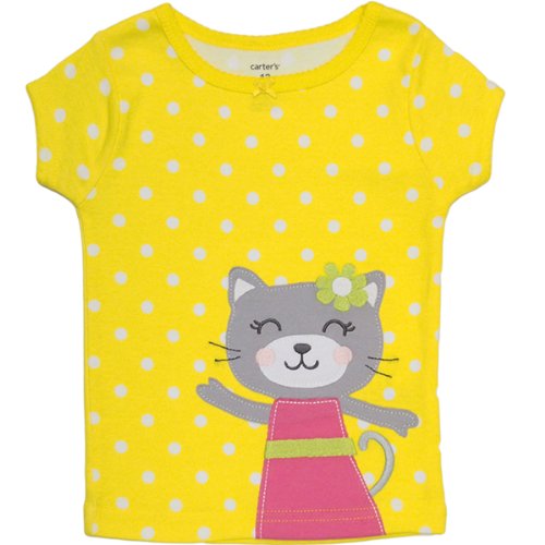 カーターズ(Carter's)【綿100%パジャマ】女の子用イエロードット柄ネコさんアップリ半袖パジャマ上下2点セット 6months 6ヶ月用 70cm 出産祝い,猫柄寝巻き,黄色水玉おねんね着【並行輸入】