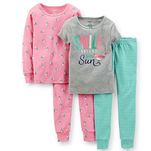 カーターズ(Carter's)女の子用ピンク小鳥柄xグレーSMILE BRIGHT like the SUN綿素材パジャマ上下4点セット 並行輸入品 (2t(88-93cm)) [並行輸入品]