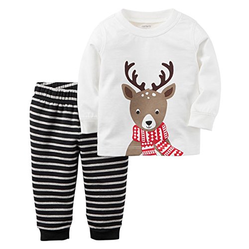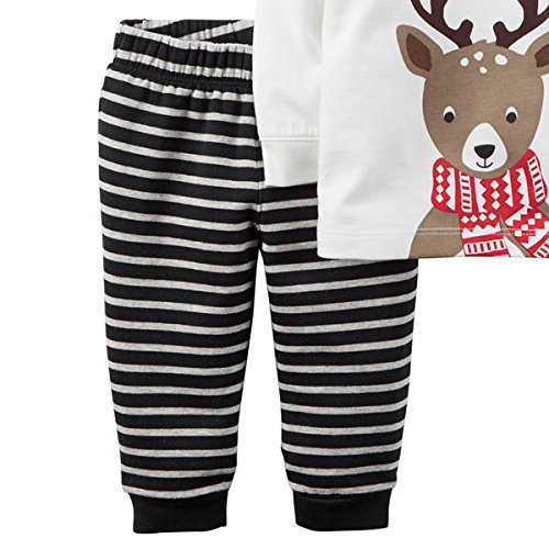 カーターズ(Carter's) 男女兼用マフラートナカイさん長袖トップスx黒ボーダーフリースパンツ上下2点セット (12months(72-78cm)) [並行輸入品]