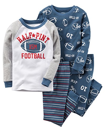 《パジャマ2セットの詳細》 ●素材:コットン100% ●サイズ: 2才 Tシャツ 胸囲49cm 着丈36.5cm ズボン ウエスト 44cm 丈 51.5cm 股下33cm 3才 Tシャツ 胸囲50cm 着丈38cm ズボン ウエスト 45cm 丈 53.5cm 股下37cm 4才:Tシャツ 胸囲54cm 着丈40cm ズボン ウエスト 46cm 丈 60cm 股下41cm 5才:Tシャツ 胸囲56cm 着丈41cm ズボン ウエスト 47cm 丈 63cm 股下44cm ★カーターズ正規品のコットン100%のパジャマ2セットが登場しました! Tシャツは白と袖がグレー、くすんだブルーのボールに赤の文字が入ったものと、くすんだブルーに白でラクビーのイラストがたくさん入ったもの2枚。 パンツはくすんだブルーと白と赤のボーダー柄と、くすんだブルーに白でラクビーのイラストがたくさん入ったもの2枚。 Tシャツは2枚ともボタンやスナップがないストレスフリー。パンツのウエストはゴムになっています。 アメリカのパジャマは体にフィットして着心地良くコットンなので汗と吸い取りお子様はご機嫌です。2セットあるので洗い替えに便利です。
