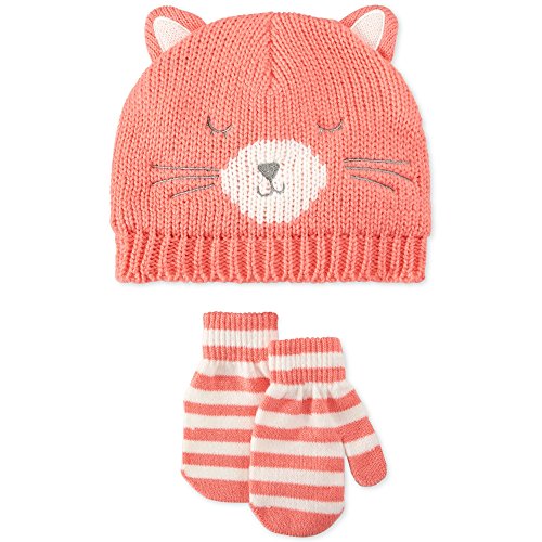 Carter 's Little Girls Kitten帽子&ストライプミトンセット – サイズ2t - 4t