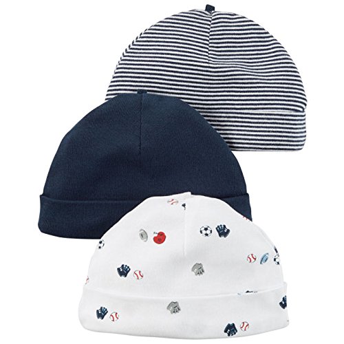 Carter's(カーターズ) ベビーキャップ3枚組(スポーツ/ボーダー/ネイビー)【0-3M/新生児用】 0-3ヶ月 [並行輸入品]