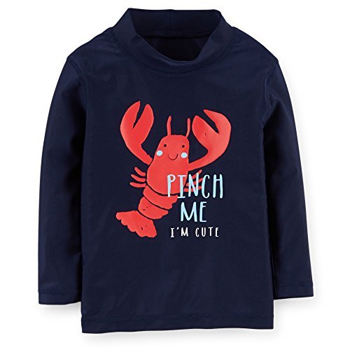 ラッシュガードは柔らかく伸びる素材で体にフィットします。 日焼けをしっかりガード。長袖。 ハイネックで首の後ろもしっかりガード。 プールや海水浴や水遊び時の紫外線対策/怪我対策にぜひどうぞ。 海にプールに!!楽しみですね~ウキウキ♪♪ かわいくカッコよく目立つこと間違いなし!! カーターズ人気の男の子水着。 UPF+50のサンスクリーン。 ☆素材:ポリエステル85%、ELASTANE15% ☆色:ネイビー