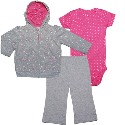 カーターズ(Carter's)女の子用グレー花柄フード付きジップアップジャケット3点セット 6months 6ヶ月用 70cm ピンク水玉模様ボディースーツ,花柄パーカー,出産祝い【並行輸入】