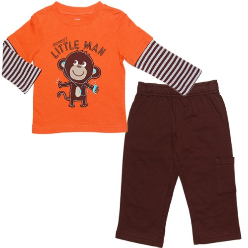 カーターズ(Carter's)男の子用オレンジのりのりモンキーアップリケ付き重ね着風シャツ&茶パンツ上下2点セット,サルセットアップ,出産祝いギフト,プレゼント,さるロンT【並行輸入】