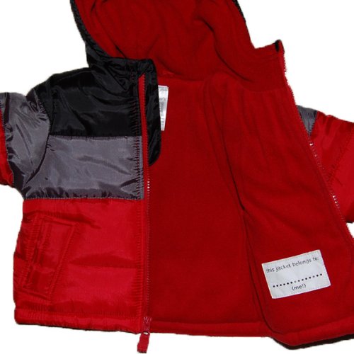 カーターズ(Carter's)【赤&黒&グレーフード付ダウン】男の子トリカラーダウン風パーカージャケット 12months 12ヶ月用 80cm 出産祝いギフトプレゼント,防寒対パーカー,レッド,ブラック【並行輸入】
