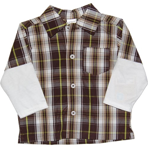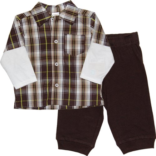 カーターズ(Carter's)男の子ブラウンマドラスチェック重ね着風上下2点セット 6months(61-67cm) 6ヶ月用 出産祝いギフトプレゼント,襟付,茶えり付ロンT,コーデパンツ [並行輸入品]