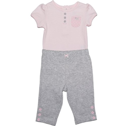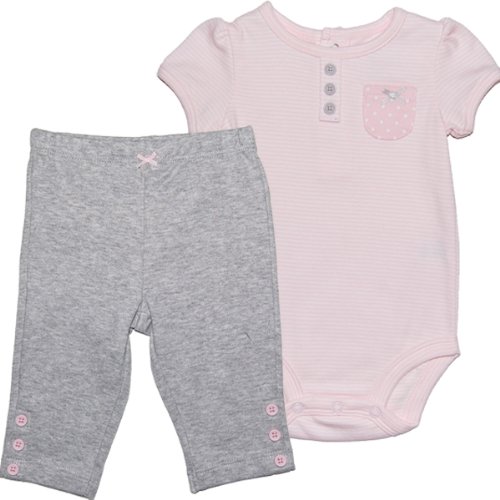 カーターズ(Carter's)【薄ピンクボディー&パンツセット】女の子薄ピンクボーダー柄半袖ボディースーツ&グレーコーデパンツ2点セットアップ newborn nb 50cm 新生児用 出産祝いギフトプレゼント【並行輸入】