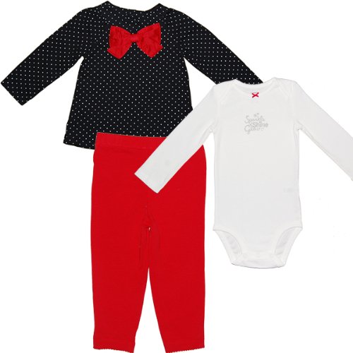 カーターズ(Carter's)黒水玉トップス3点セット ブラックドット+レッドリボン長袖トップス&ホワイトボディースーツ&レッドパンツ上下3点セットアップ 6months(61-67cm) [並行輸入品]