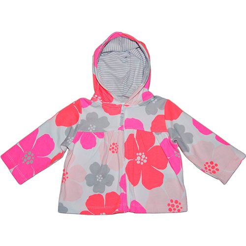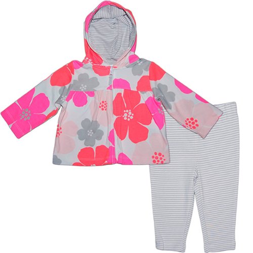 カーターズ(Carter's)白花柄パーカーセット 女の子ホワイトxネオンピンク花柄フード付きジャケット&グレーボーダーコーデパンツ上下2点セット 6months(61-67cm) 6ヶ月用 出産祝いギフト,上下セット[並行輸入品]