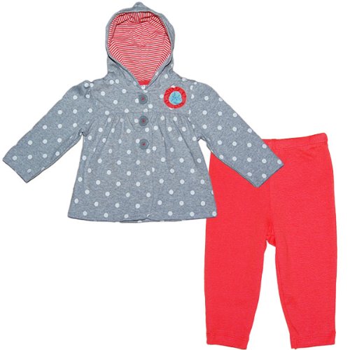 カーターズ(Carter's)【グレーパーカーセット】女の子グレーxホワイトドット柄レッド花デコ付きパーカージャケット&レッドコーデパンツ上下2点セット 3months 3ヶ月用 60cm 出産祝いギフト,上下セット【並行輸入】