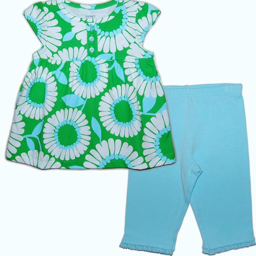 カーターズ(Carter's)女の子用緑&水色花柄フレンチスリーブチュニック&アクアブルーパンツ上下2点セットアップ 6months 6ヶ月用 70cm グリーン半袖トップス,水色コーデパンツ,出産祝いギフト [並行輸入品]