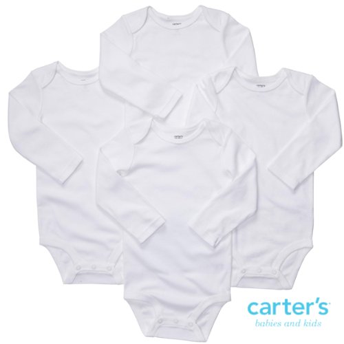 カーターズ(Carter's)【ホワイト天使の長袖肌着】男女兼用真っ白なエンジェル長袖ボディースーツ4枚セット,白ロンパース,綿タンクトップ、ボディスーツ,下着【並行輸入】