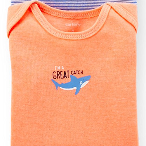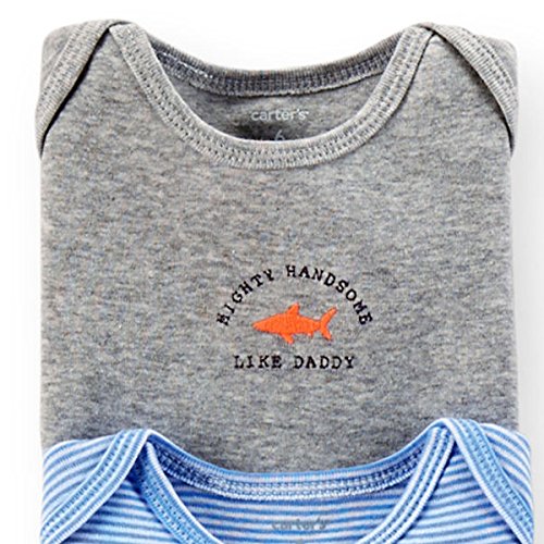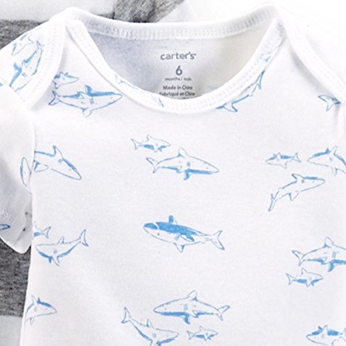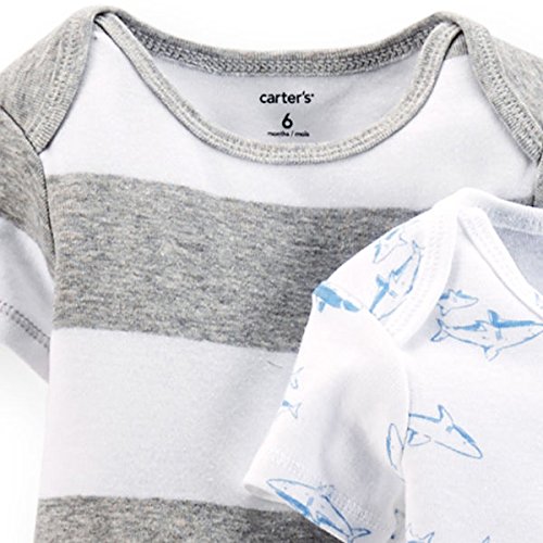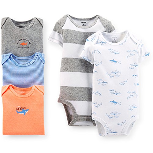 カーターズ(Carter's)2015年春夏最新作,男の子用クラシックシャーク半袖ボディースーツ5枚セット 出産祝い,水色ロンパース,ボーダー肌着,綿下着,ボディスーツ,ボディシャツ,コンビ肌着,短肌着【並行輸入品】 (newborn(-55cm))