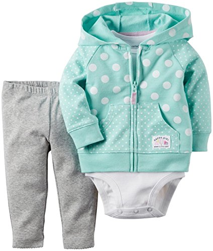 カーターズ carter's 2016年春夏最新作 女の子用ターコイズブルー水玉模様HAPPY GIRLフード付きジャケット上下3点セット (9month... [並行輸入品]