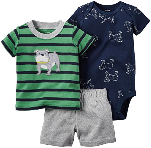 カーターズ carter's 2016年春夏最新作 男の子用緑x紺ボーダーワンちゃんTシャツの豪華なお出かけ用上下3点セット (9months(67-72... [並行輸入品]