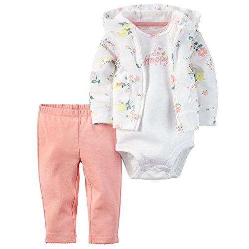 カーターズ carter's 女の子用白so happy花柄フード付きジャケット上下3点セット (6months(61-67cm)) [並行輸入品]