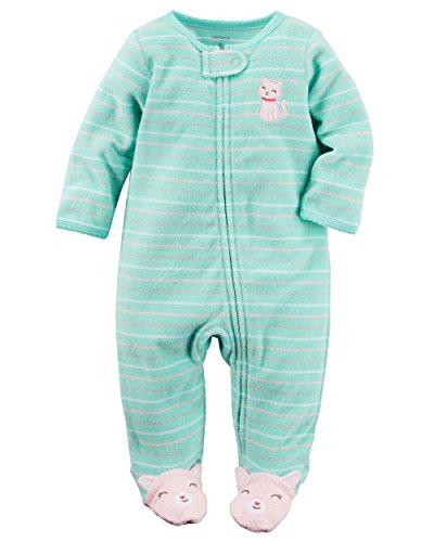 カーターズ(Carter's) 女の子用ミントグリーンボーダーネコさんパイル地足つきカバーオール (6months(61-67cm)) [並行輸入品]