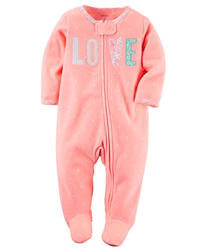 カーターズ ロンパース carter's 女の子用蛍光ミルキーピンクドットLOVEフリース足つきカバーオール (9months(67-72cm)) [並行輸入品]